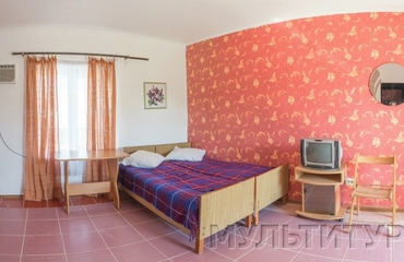 - В номере холодильник, кондиционер, телевизор - спутниковое TV,Wi-Fi, шкаф, тумбочка, стол, стулья. На окне антимоскитная сетка, в окно утром солнце, весь день тень.